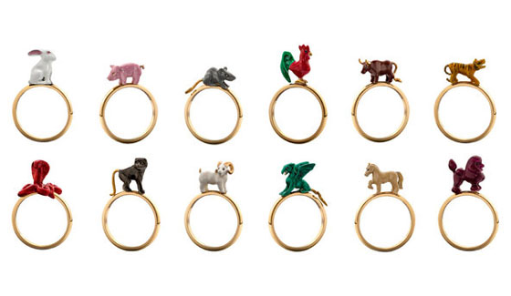 Clever 18K gold and enamel chinese zodiac rings and pendants from Solange Azagury-Partidge.